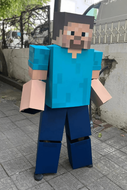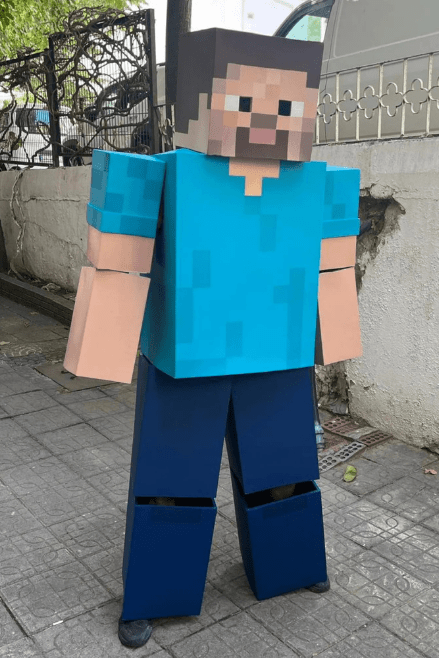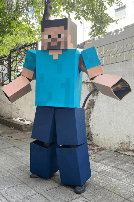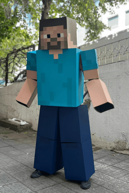 Handcrafted EVA foam costume with cube-like, pixel-inspired details for that iconic blocky adventure look.